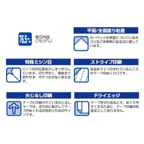 テープに印刷されている矢印マークは、逆方向に転がしてテープがめくれるのを防ぐためのサインです。