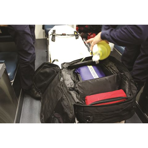 バッグの中にもストラップがあり、荷崩れを防止します。