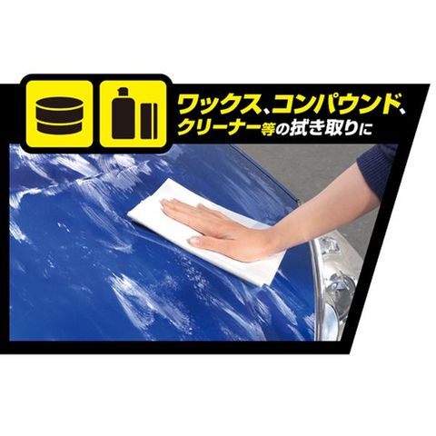 使用方法:・乾拭きの場合(コーティング剤・ワックスの拭き取り)は、てのひらサイズに折りたたみ、常に新しい面で拭き取ってください。 ・水拭きの場合(コーティング剤の塗り込み)は、拭く、絞るを繰り返して、水分と一緒に拭き上げてください。