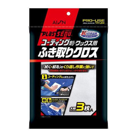 レーヨンと極細繊維の複合素材を使用した不織布のクロスで、レーヨン繊維が水分を素早く吸い取り、極細繊維が余分なコーティング成分や汚れの粒子をしっかり拭き取るため、コーティング剤のムラ、クスミなどが出にくくなっています。