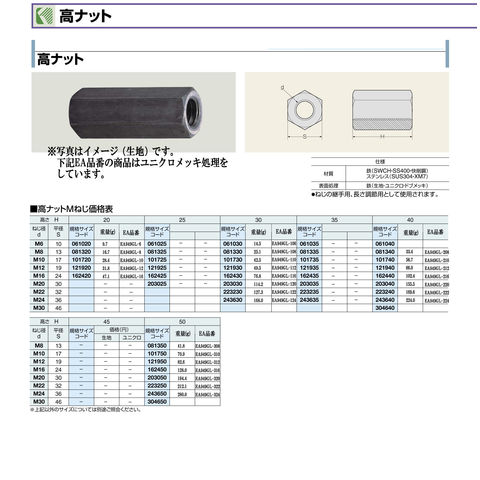 EA949GL-10 エスコ ESCO M10x20mm 高ナット 10個
