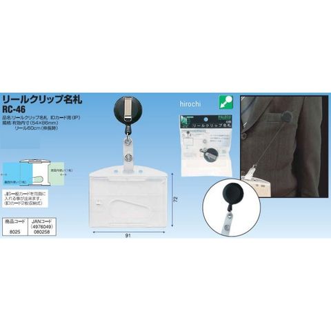 EA956VA-121 エスコ ESCO 54x86mm IDカード用名札 リールクリップ式