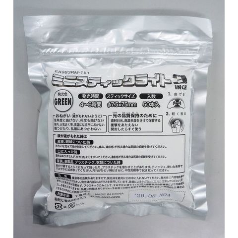 スティックを軽く折り曲げると、内部の化学変化で光り始めます。