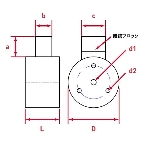 ●サイズ(mm):D:35、a:16、b:13、c:19、d1:M8(深さ12mm)、d2:M5(深さ6mm)