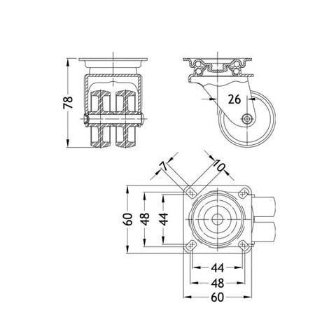 EA986PE-1 エスコ ESCO 50mm キャスター 自在金具付・ツインホイール
