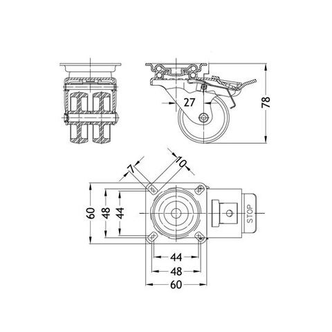 EA986PE-2 エスコ ESCO 50mm キャスター 自在金具ツインホイル・ブレーキ付