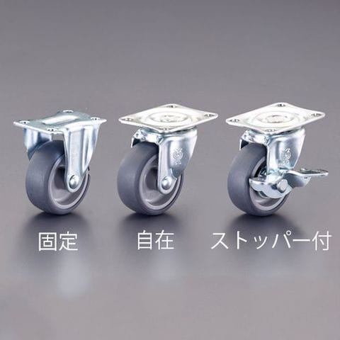 EA986PF-84 エスコ ESCO 50mm キャスター(固定金具・エラストマー車輪)