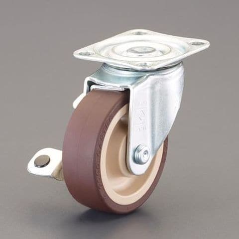 EA986PP-72 エスコ ESCO 75mm キャスター (自在金具・左ブレーキ/黒ポッチ付)
