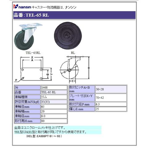 EA986PT-101 エスコ ESCO 65mm キャスター 自在金具付