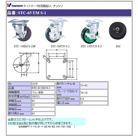 EA986PT-22 エスコ ESCO 65mm キャスター 自在金具・ブレーキ付