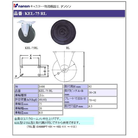 EA986PT-92 エスコ ESCO 75mm キャスター 固定金具付
