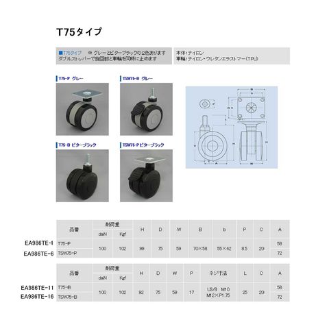 EA986TE-11 エスコ ESCO 75mm キャスター ツインホイール