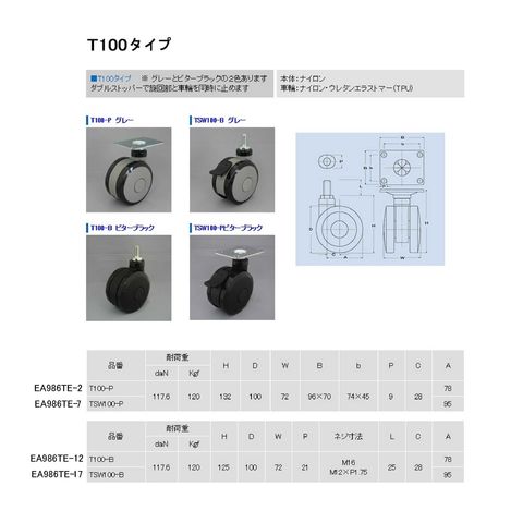 EA986TE-12 エスコ ESCO 100mm キャスター ツインホイール