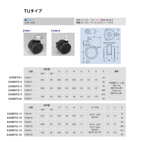 EA986TG-12 エスコ ESCO 50mm キャスター ツインホイール