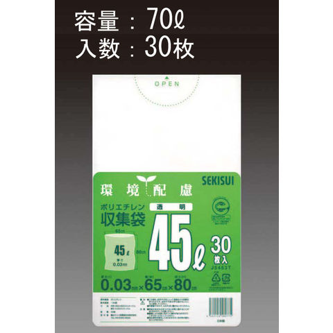 EA995AD-43 エスコ ESCO 70L ごみ袋 透明/30枚