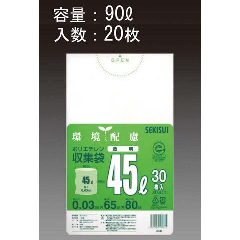 EA995AD-44 エスコ ESCO 90L ごみ袋 透明/20枚