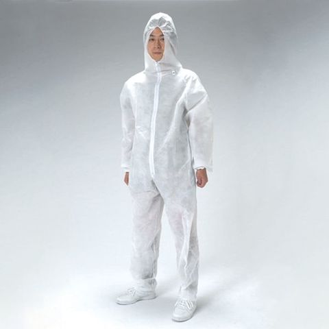 衣類やツヅキ服の上から簡単に着用できる、不織布でできた防護服