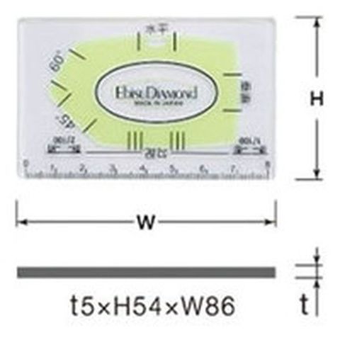 ・長さ(mm):86・高さ(mm):54・厚さ(mm):5.5・マグネット:なし・色:透明・本体色:ホワイト・気泡管色:グリーン・精度:±2.50mm/m=±0.1432°以内・感度:0.50mm/m=0.0286°