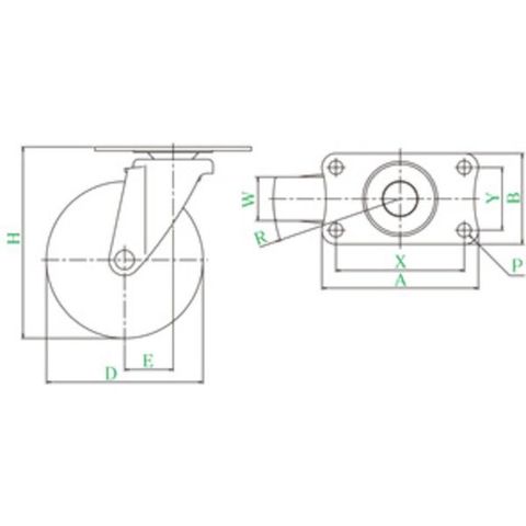 ・車輪径D(mm):75・タイプ:自在式・許容荷重(daN):35・許容荷重(kgf):35.7・車輪幅(mm):20・取付高H(mm):93・取付座A(mm):70・取付座B(mm):42・取付ピッチX(mm):56・取付ピッチY(mm):28・取付穴径P(mm):6.5・許容荷重(N):350