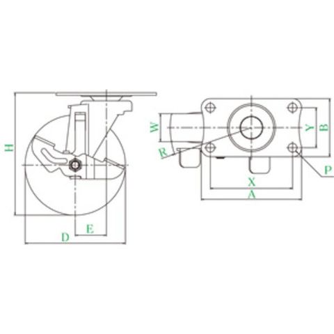 ・車輪径D(mm):75・タイプ:自在式・許容荷重(daN):35・許容荷重(kgf):35.7・車輪幅(mm):20・取付高H(mm):93・取付座A(mm):70・取付座B(mm):42・取付ピッチX(mm):56・取付ピッチY(mm):28・取付穴径P(mm):6.5・許容荷重(N):350