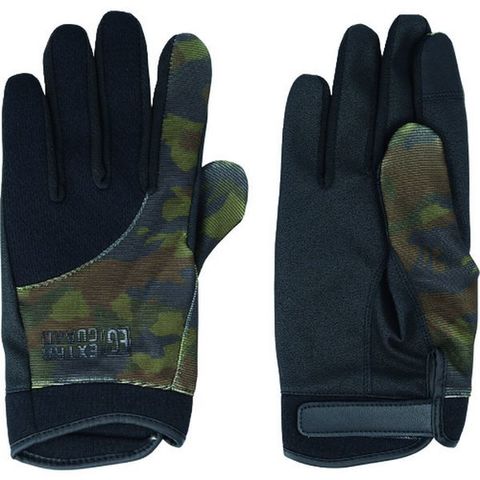 ・手のひら部のPUは多孔質層と特殊加工による、高い通気性とグリップ力があります。・内側に脱着を邪魔しない適度なスベリ止めを施しており、作業時の手のズレを防ぎます。・親指と人差し指の先に上質なタッチパネル対応生地を使用しています。・甲部分の一部にメッシュ生地を使用することにより、ムレを軽減します。・高いフィット感で細かい作業が可能です。・オリジナルのアニマルカモフラ(カーキ)を使用しています。