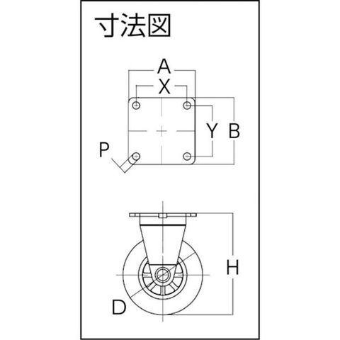 ・車輪径D(mm):50・タイプ:固定式・許容荷重(daN):39.2・許容荷重(kgf):40・車輪幅(mm):20・取付高H(mm):64.0・取付座A(mm):60・取付座B(mm):60・取付ピッチX(mm):45・取付ピッチY(mm):45・取付穴径P(mm):4.5・許容荷重(N):400・色:透明