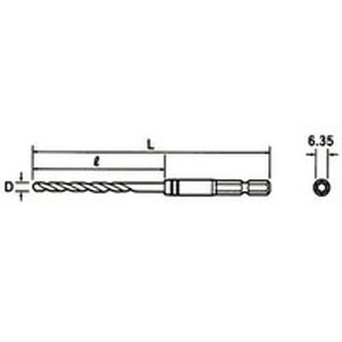 ・刃径(mm):3.7・溝長(mm):39・全長(mm):100・シャンク形状:六角軸(6.35mm)・シャンク径(mm):6.35