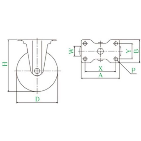 ・車輪径D(mm):75・タイプ:固定式・許容荷重(daN):35・許容荷重(kgf):35.7・車輪幅(mm):20・取付高H(mm):93・取付座A(mm):70・取付座B(mm):42・取付ピッチX(mm):56・取付ピッチY(mm):28・取付穴径P(mm):6.5・許容荷重(N):350