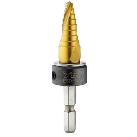 ・段幅(mm):3・段数(段):9・シャンク形状:六角軸(6.35mm)・シャンク径(mm):6.35・穴あけ寸法(φ):12.5・全長(mm):74・刃径(mm):12.5・刃長(mm):34.4・表面処理:チタンコーティング