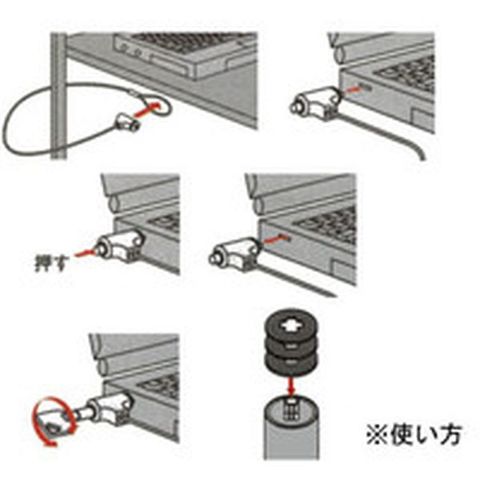 ・ワイヤ寸法(mm)太さ:4.4・ワイヤ寸法(mm)長さ:1700・適合セキュリティスロットサイズ(mm):3×7・ワイヤ寸法(mm)太さ×長さ:4×1700