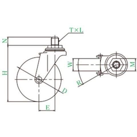 ・車輪径D(mm):50・タイプ:自在式・許容荷重(daN):38・許容荷重(kgf):38.76・車輪幅(mm):21・取付高H(mm):68・軸長L(mm):35・ねじT:M12・ねじピッチ(mm):1.75・ねじ山:1.75・許容荷重(N):380