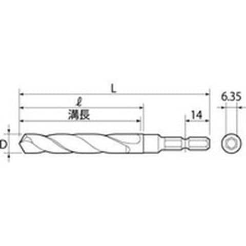 ・刃径(mm):9.5・溝長(mm):70・全長(mm):110・シャンク形状:六角軸(6.35mm)・シャンク径(mm):6.35
