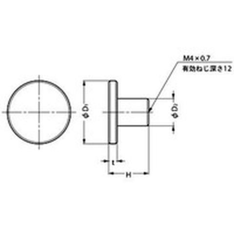 ・外径(mm):20・ノブ高さ(mm):18・ねじ寸法:M4・ねじ深さ(mm):12・ねじ長さ(mm):12・色:シルバー・幅(mm):20・ねじ径:M4・穴径(mm):M4
