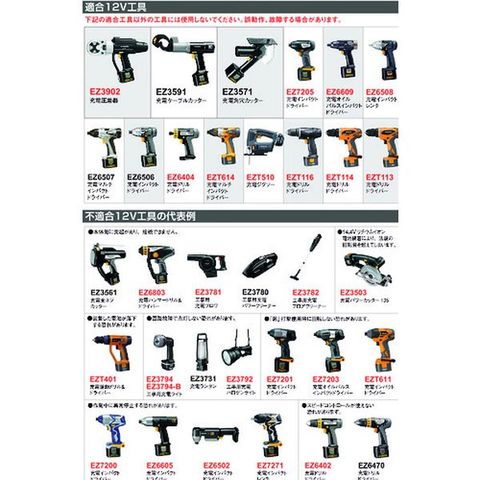 ・12V工具の種類により使用できない本体が御座います。