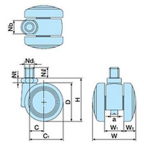 ・車輪径D(mm):50・タイプ:自在式・許容荷重(daN):58.8・許容荷重(kgf):60・車輪幅(mm):43.5・取付高H(mm):66・取付座A(mm):60・取付座B(mm):50・取付ピッチX(mm):46・取付ピッチY(mm):35・取付穴径P(mm):6.4