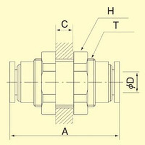 ・適合チューブ外径D(mm):12×12・接続口径:M22×1・六角対辺(mm):24・流体温度(℃):-5~60(空気)、5~40(水)・使用圧力:1MPa(空気)、0.3MPa(水)・使用流体:空気、水