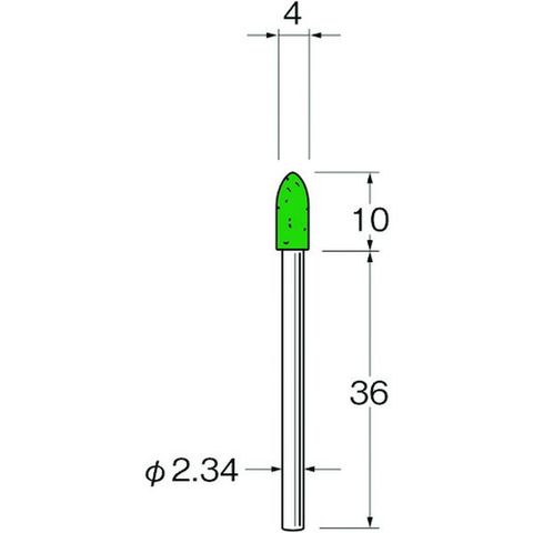 ・タイプ:砲弾型・外径(mm):4・幅(mm):10・軸径(mm):2.34・軸長(mm):36・最高使用回転数(rpm):18000・色:緑・全長(mm):46・材質:羊毛