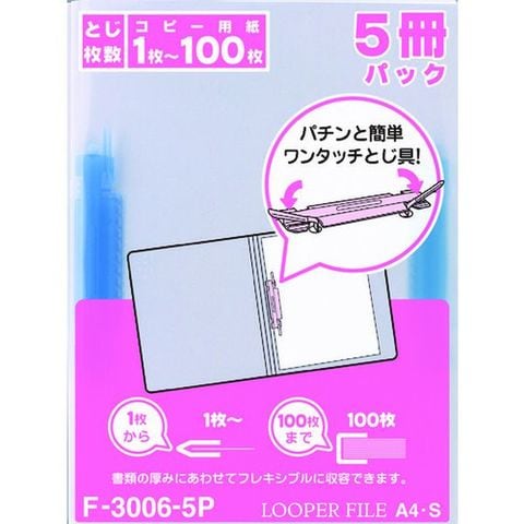 F30065PAO (株)LIHIT リヒト フラットファイル A4ルーパーファイル(タテ型2穴)(5冊入) 青