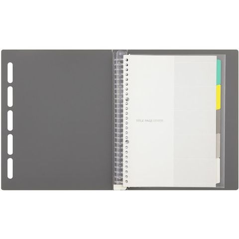 ・落ち着いた色味の「キレイめ」バインダーです。・表紙に抜き加工が施されているので、閉じていてもインデックスのタイトルを確認できます。