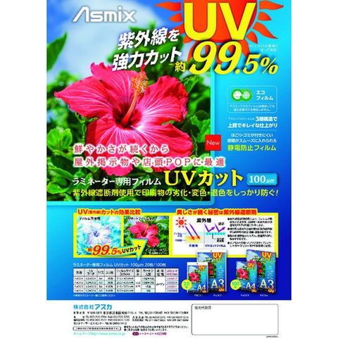 (株)アスカ アスカ ラミネートフィルム UVカット A3 20枚 100ミクロン
