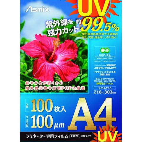 (株)アスカ アスカ ラミネートフィルム UVカット A4 100枚 100ミクロン