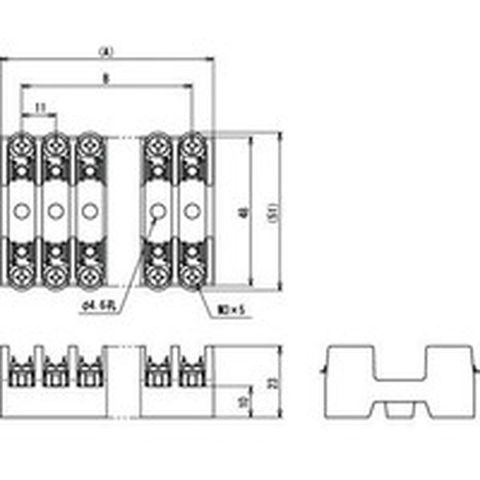 ・回路電圧(V):250・回路電流(A):10・極数(P):3・長さ×幅(A)×高さ(mm):51×35×23・取付穴間B(mm):22・耐電圧(V):AC1500(1分間)