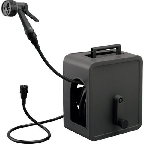 ・雨風や直射日光からホースを守り、傷みにくくするフルカバーホースリールです。・アーチ状の巻き取り口がホースの片寄りを防ぐので、ホースの巻き取りが簡単です。・アクアガンと蛇口口金を付け替えることで、手持ちで使用する場合と据え置きして使用する場合のいずれにも対応できます。・サイドホースの巻き取りができ、アクアガンを保管できる仕様で、よりコンパクトでスッキリとしたデザインです。・ワンタッチコネクター付きで、蛇口との接続が簡単です。