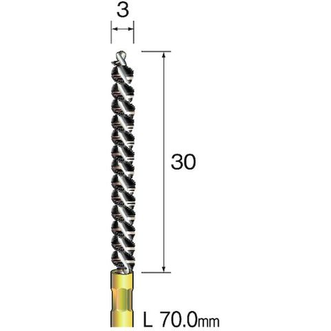 ・線径(mm):φ0.15・外径(mm):3.0・ブラシ部長さ(mm):30・軸径(mm):3.0・全長(mm):70.0・最高使用回転数(rpm):3000