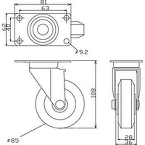 ・騒音値(dB):60・色:赤・キャスター径(mm):85・取付高H(mm):110・車輪幅(mm):18・許容荷重(kgf):50・取付ピッチX×Y(mm):63×40・車輪径D(mm):85・取付座A×B(mm):81×57・取付穴径P(mm):9.2・許容荷重(daN):49・車輪材質:ゴム・タイプ:固定