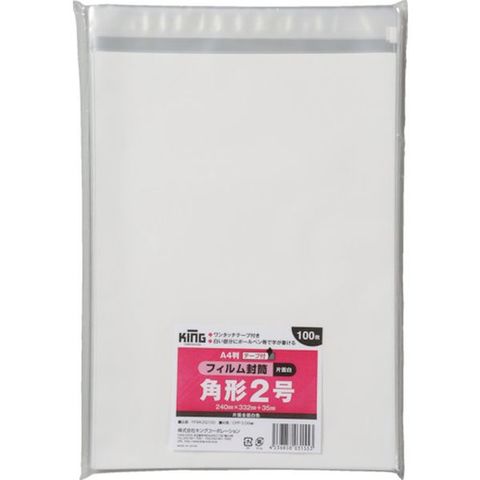 (株)キングコーポレーション キングコーポ フィルム封筒 角2 片面白 テープ付 100枚