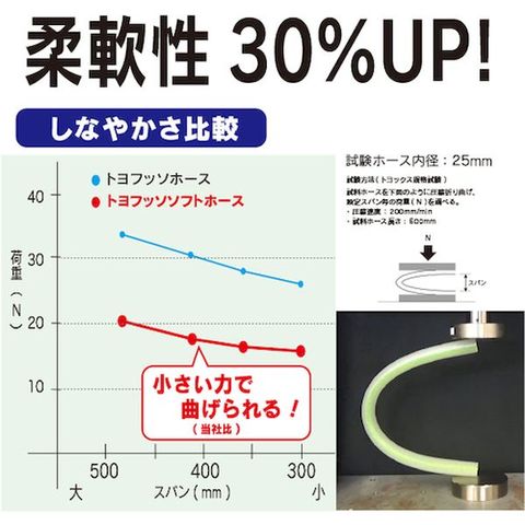 柔らかいフッ素ホース(薬品・食品用) トヨフッソソフトホース 内径19mm×外径26mm 長さ10m FFY-19-10