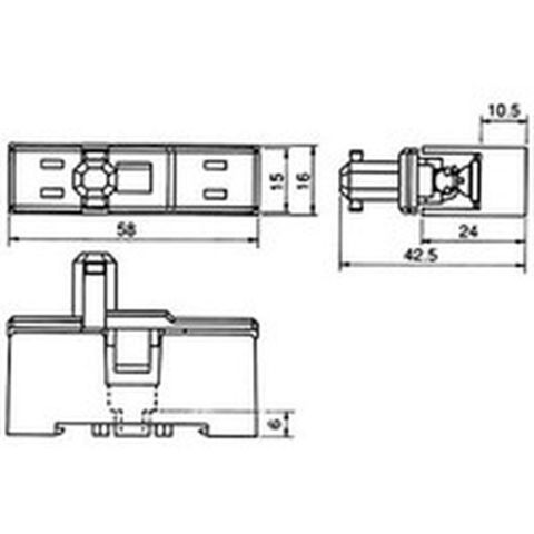 ・幅×奥行×高さ:58×16×41mm・取付方法:M4ビスの10~12mmまたはDINレール連結式・結線方法:M4×8セルフアップビス・回路電流:最大15A~連続10A