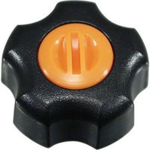 ・外径(mm):36・ノブ高さ(mm):20・ねじ寸法:M6×1.0・ねじ深さ(mm):15・キャップ色:橙・耐熱温度(℃):80℃