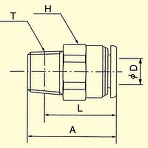 ・適合チューブ外径D(mm):8・接続口径:R1/4・六角対辺(mm):14・使用圧力:1MPa(空気)、0.3MPa(水)・使用流体:空気、水・流体温度(℃):-5~60℃(空気)、5~40℃(水)